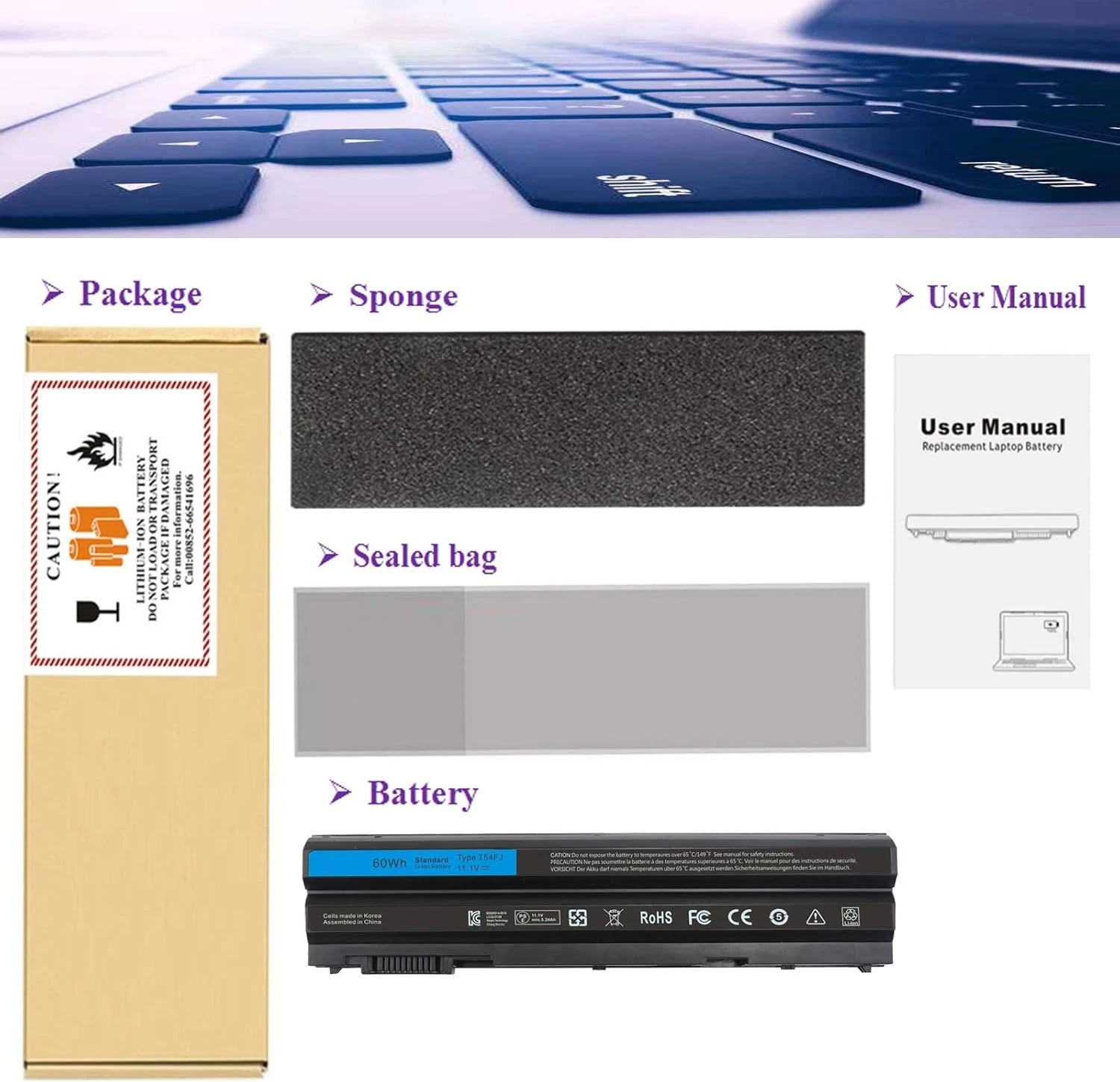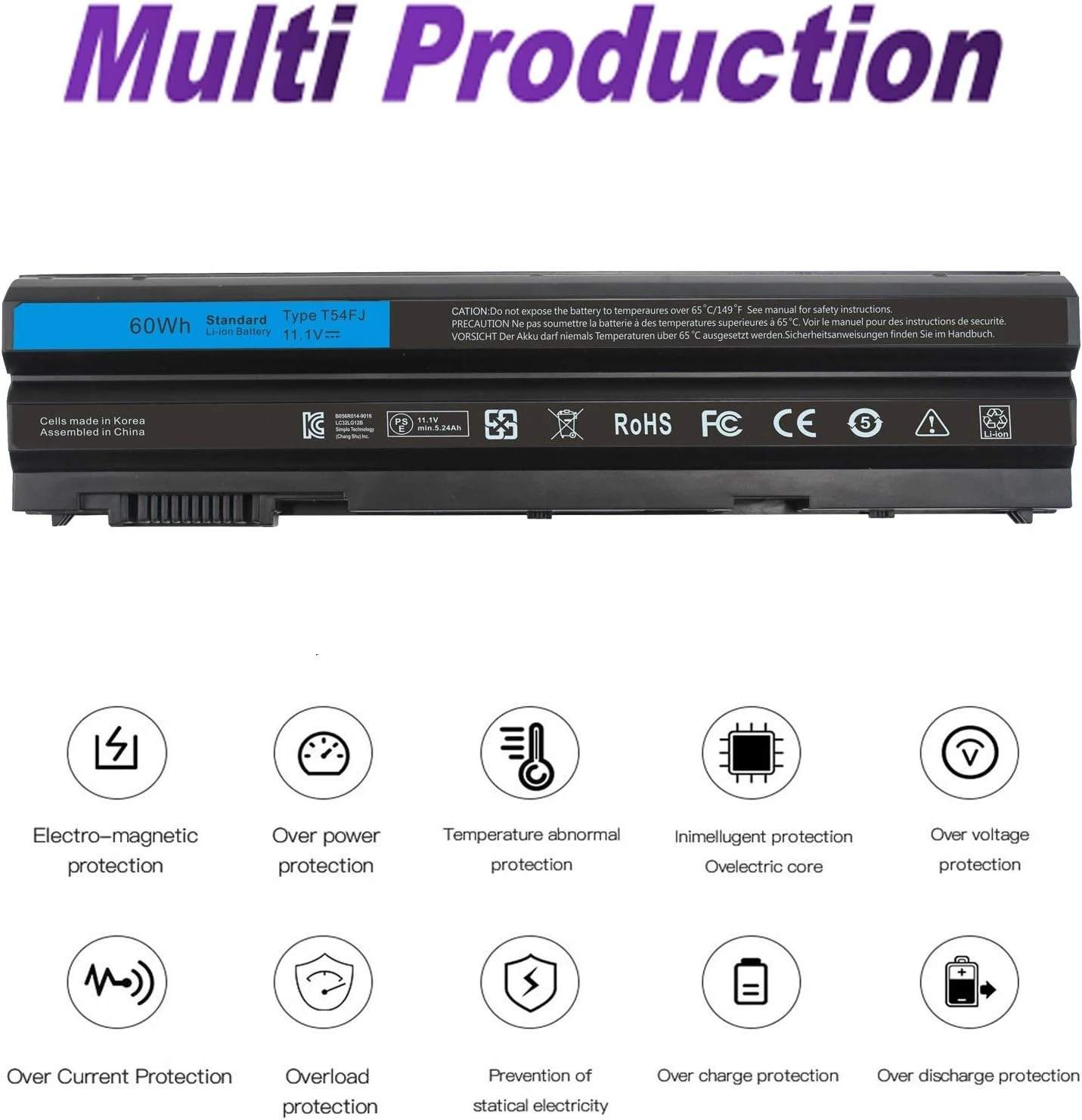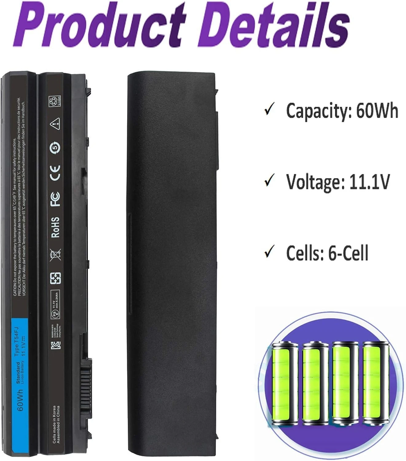 بطارية Dell T54FJ 60Wh هي بطارية بديلة عالية الجودة مصممة لتوفير أداء قوي ووقت تشغيل طويل لأجهزة Dell Latitude وInspiron المتوافقة.