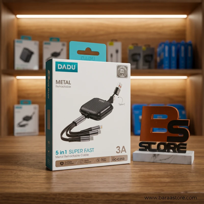 وداعاً لفوضى الكابلات المتشابكة مع كابل الشحن المبتكر من DADU. تصميم معدني أنيق وعملي قابل للسحب يلبي جميع احتياجاتك لشحن أجهزتك المتعددة بسرعة وأمان. خيارك الأمثل للاستخدام في المنزل، أو داخل السيارة، أو أثناء السفر بفضل تصميمه المدمج الذي يجمع لك 5 خيارات توصيل في كابل واحد!