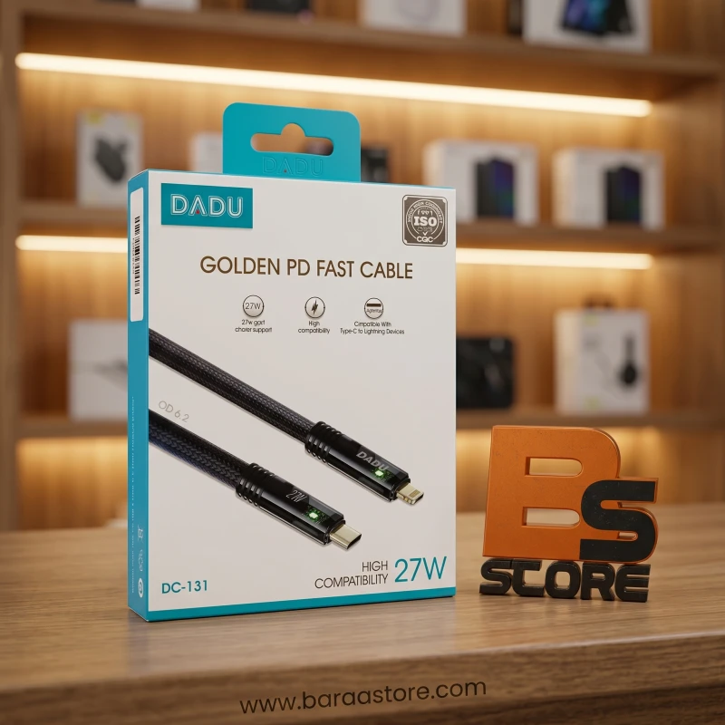 استمتع بأقصى سرعة شحن لأجهزة الآيفون والآيباد مع كابل DADU Golden PD المبتكر. يتميز هذا الكابل بتقنية الـ Power Delivery التي توفر شحنًا آمنًا وفعالًا بقدرة تصل إلى 27 وات، مما يجعله الخيار الأمثل للمستخدمين الذين يبحثون عن الأداء القوي والمتانة في آن واحد.