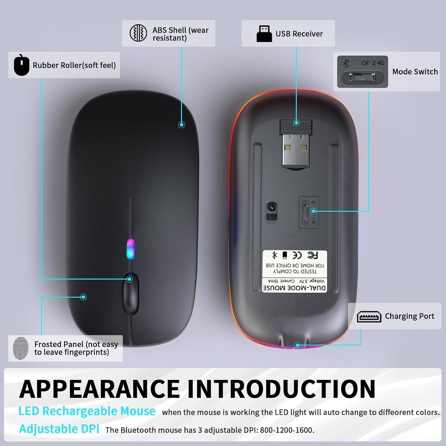 الماوس الأمثل للعمل، الألعاب، السفر، والمكتب مع تصميم عصري وإضاءة جذابة.