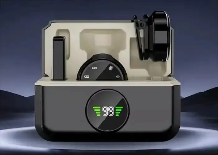 • علبة شحن ذكية: مزودة بشاشة LED رقمية تعرض لك نسبة البطارية بدقة، عشان ما تتفاجئش بفصل الشحن وقت التصوير.