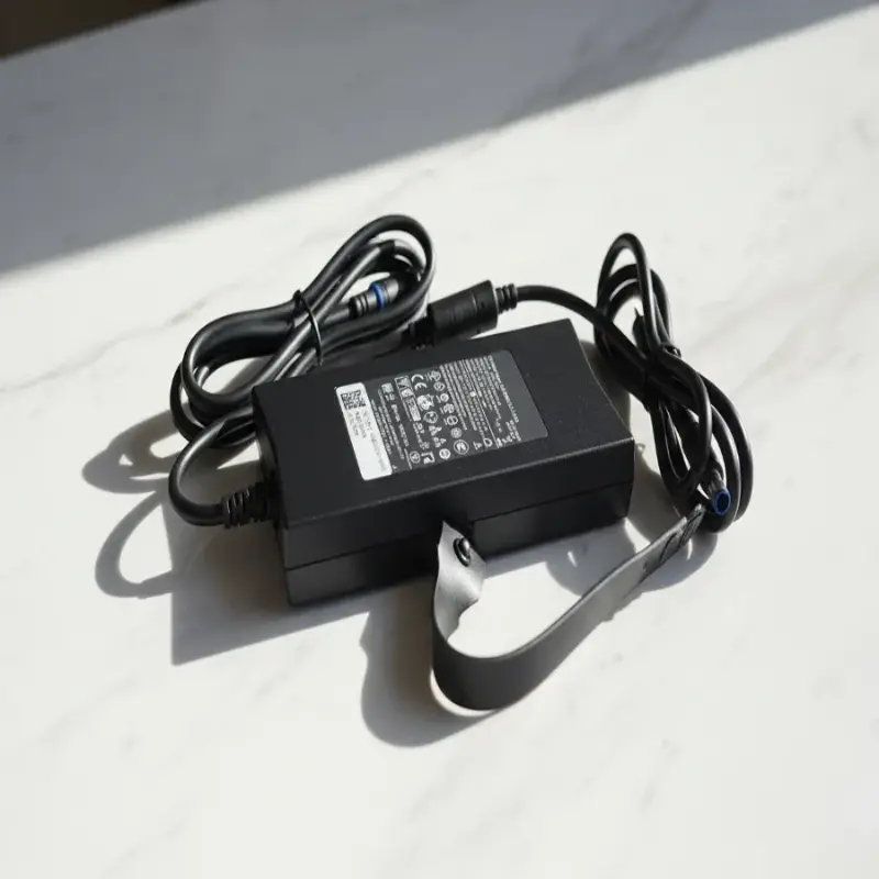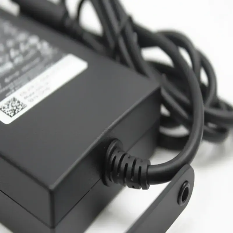 الشاحن بتصميم متين ولون أسود أنيق، مع موصل Dell Proprietary الأصلي لضمان أفضل توافق وأعلى أمان.