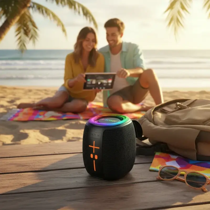استمتع بتجربة صوتية فريدة مع سماعة X Scoot XS610 – صب بلوتوث محمول يجمع بين القوة والأناقة. بفضل صوتها القوي والباس النقي، ستشعر وكأنك في حفلة أينما كنت. تأتي السماعة مع إضاءة LED ملونة تضيف أجواء مميزة، بالإضافة إلى دعم راديو FM لتستمتع بمحطاتك المفضلة دون الحاجة لهاتف.
